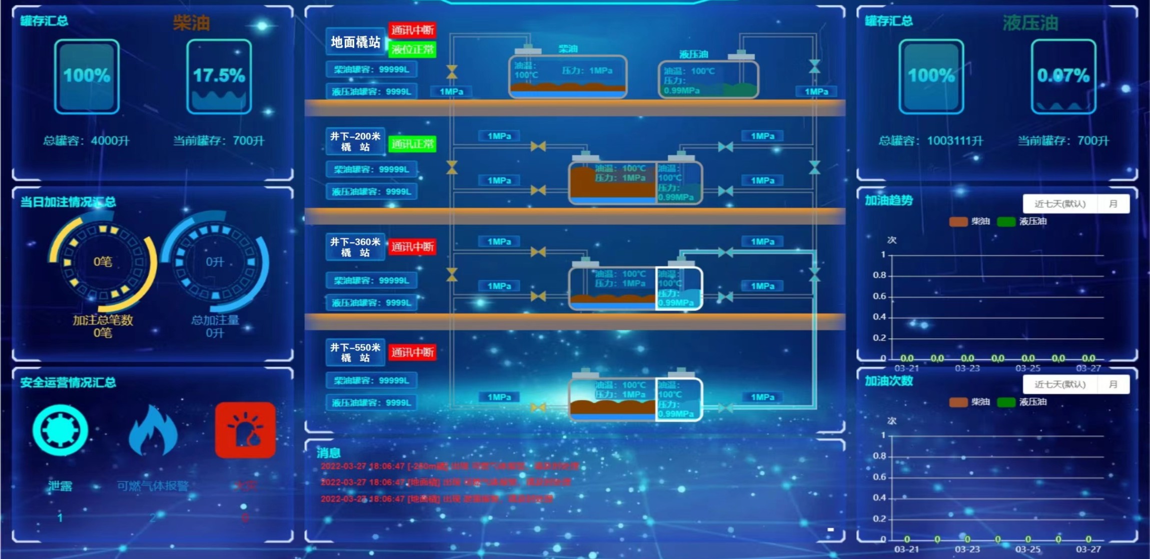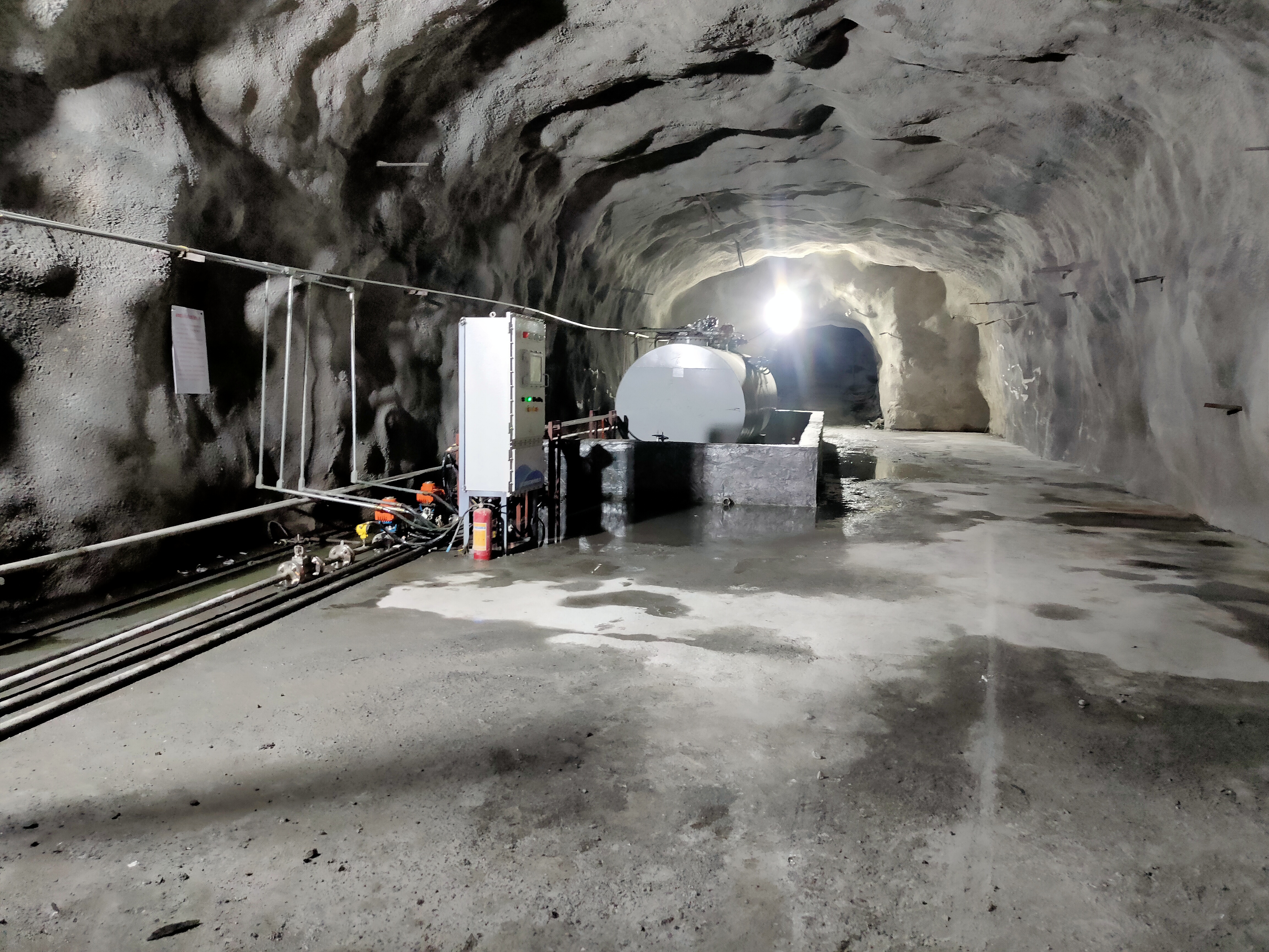 凡口鉛鋅礦井下680米智能供油系統 目前正有序施工中, 預計9月底完工并投入使用。該項目為全國首創(chuàng), 由韶關企業進行技術攻堅 并申請多項國家專利, 擬申報吉尼斯世界紀錄 “全球最深的智能供油系統”。 凡口鉛鋅礦井下智能供油系統 需在地面設置橇裝加油裝置, 并分別在地下 330米、480米和680米處 建設智能化供油系統, 通過鉆孔鋪設輸油管線, 將油品從地面輸送到井下。 地下330米智能加油點, 目前已進入收尾階段, 現場有兩根 從地面裝置接下來的輸油管, 用于工程車加油, 另一邊也有兩根輸油管輸送到 地下480米和680米的智能加油點。 別看油管很細,鉆孔不大, 但施工難度并不小, 全長3千多米的輸油管, 垂直打孔偏差不能超過1米。 作為亞洲最大的 單體鉛鋅銀礦生產基地, 凡口鉛鋅礦 有井下工程車輛和設備100多臺, 井下用油量大。 井下智能化供油系統啟用后, 不僅解決井下用油安全、環(huán)保風險, 同時降低生產用油成本, 推進凡口鉛鋅礦建設智能化礦山, 實現“無人開采”。 如果鉆孔偏差太大,就找不到鉆下來的孔,影響輸油管道的布設,增大成本。3千多米有5千多個焊接點,所有的焊接口都要達到高壓管道的焊接要求,這個項目是全國首創(chuàng),在全國所有礦山企業中,我們是首次使用通過輸油管道往井下輸油,并且實現智能控制的方案。 這個月底把地下330米加油點完工,開始加油,9月底把底下480米和680米開通使用。希望通過這個項目打造創(chuàng)新科技的韶關樣板,把先進的經驗和技術推廣到全省、全國乃至全球。